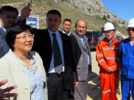 2010年8月27日,吉尔吉斯斯坦前总统奥通巴耶娃视察吉尔吉斯斯坦黄金选矿厂工地